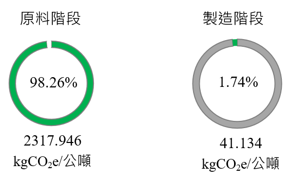 1. API 5CT鋼管碳足跡為2359.080 kgCO2e/公噸,生產各階段呈現如下: